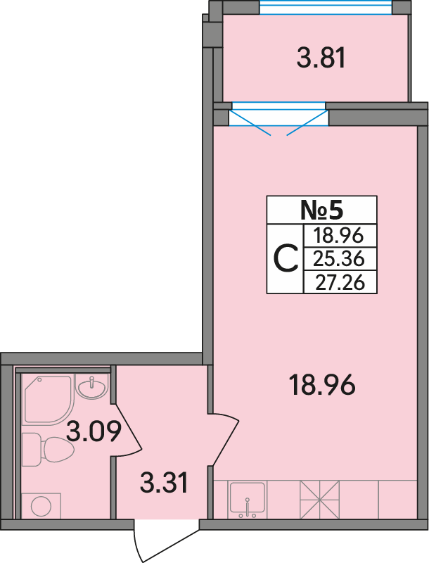 Корпус 2, Подъезд 1, Этаж 1, Квартира № 5