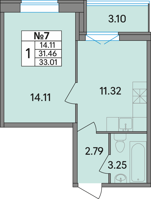 Корпус 2, Подъезд 1, Этаж 1, Квартира № 7
