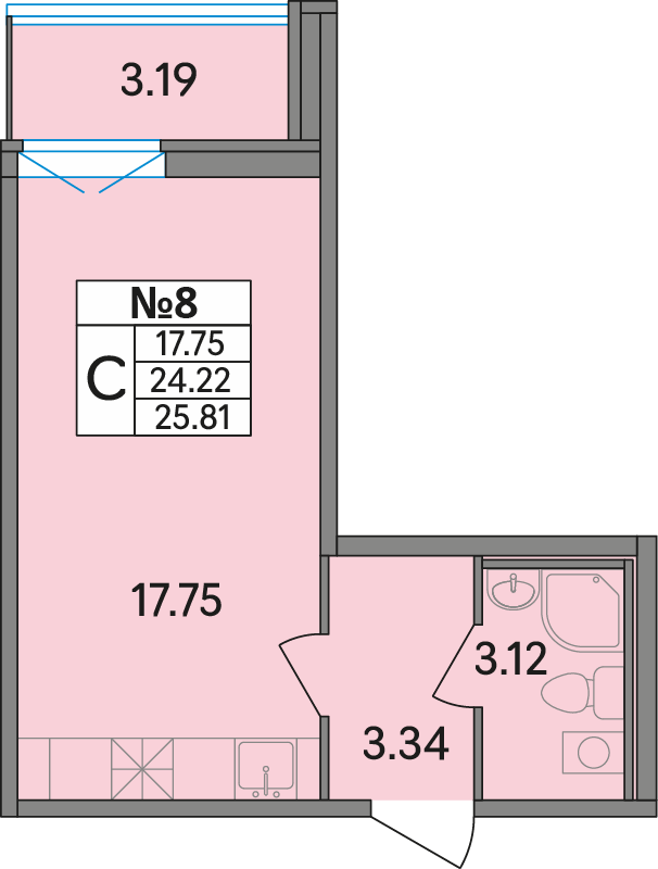 Корпус 2, Подъезд 1, Этаж 1, Квартира № 8