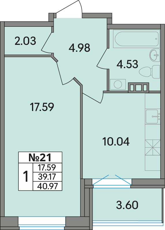 Корпус 2, Подъезд 1, Этаж 2, Квартира № 21