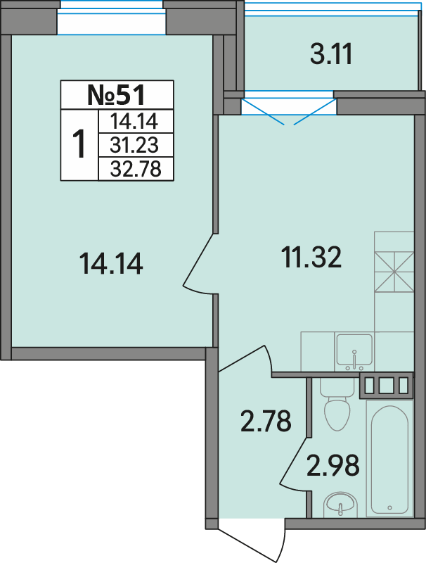 Корпус 2, Подъезд 1, Этаж 5, Квартира № 51