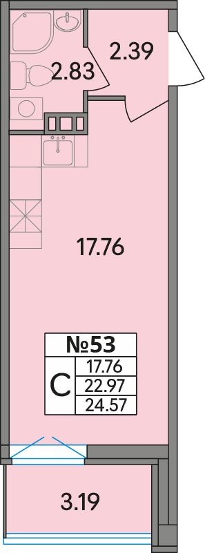 Корпус 2, Подъезд 1, Этаж 5, Квартира № 53