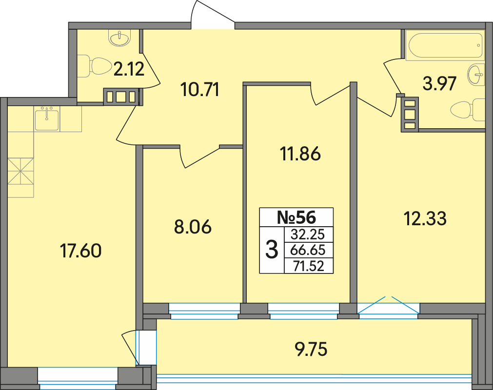 Корпус 2, Подъезд 1, Этаж 6, Квартира № 56