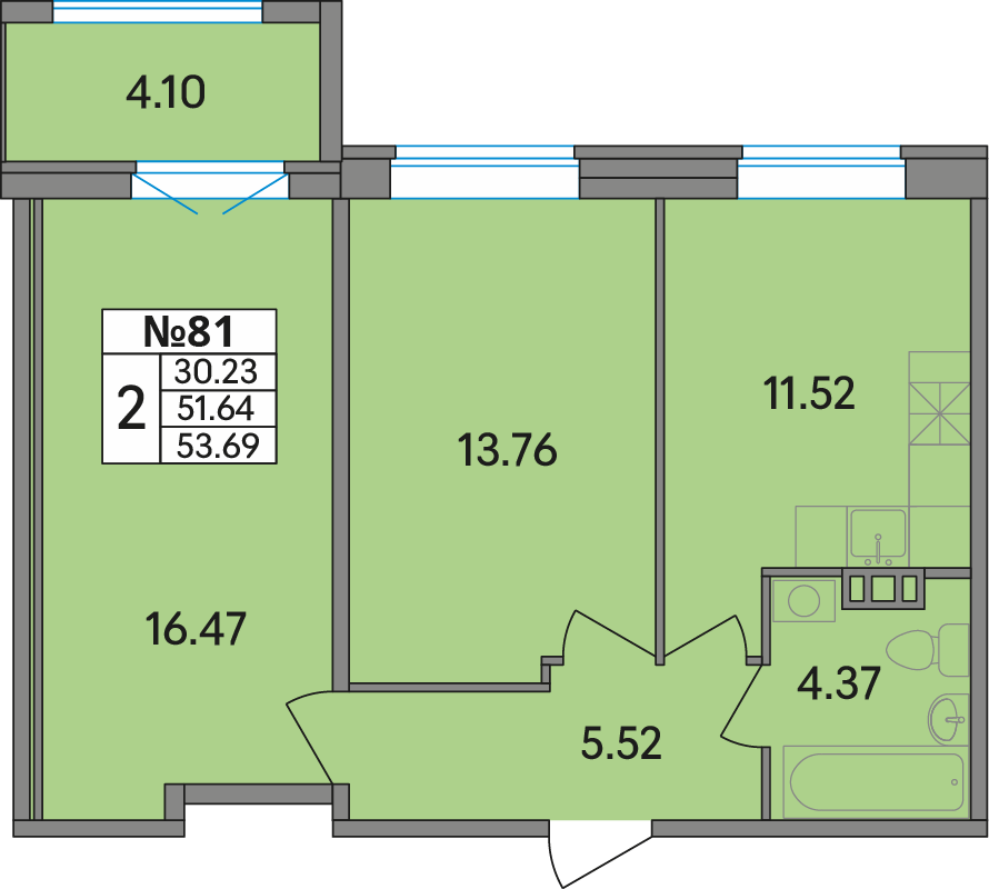 Корпус 2, Подъезд 1, Этаж 8, Квартира № 81