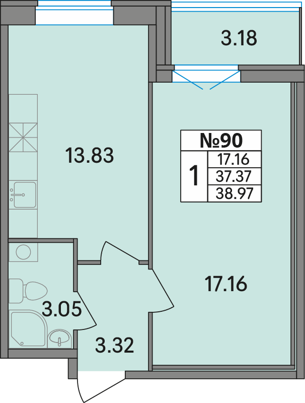 Корпус 2, Подъезд 2, Этаж 1, Квартира № 90