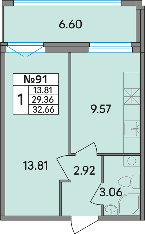 Корпус 2, Подъезд 2, Этаж 1, Квартира № 91