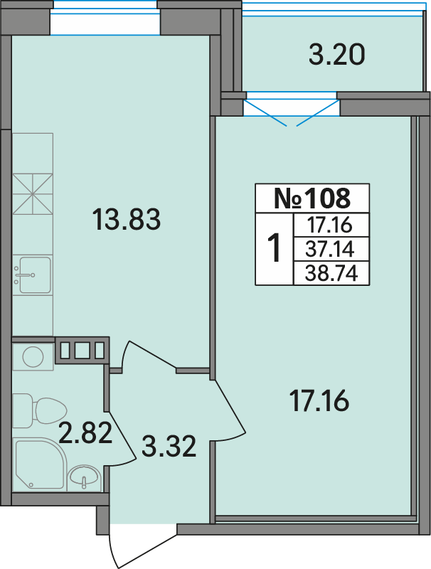 Корпус 2, Подъезд 2, Этаж 4, Квартира № 108