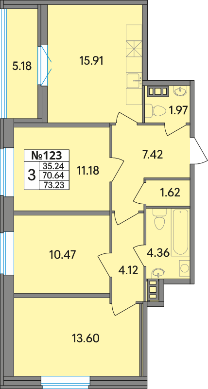 Корпус 2, Подъезд 2, Этаж 6, Квартира № 123