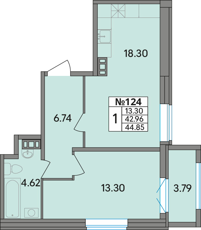 Корпус 2, Подъезд 2, Этаж 6, Квартира № 124