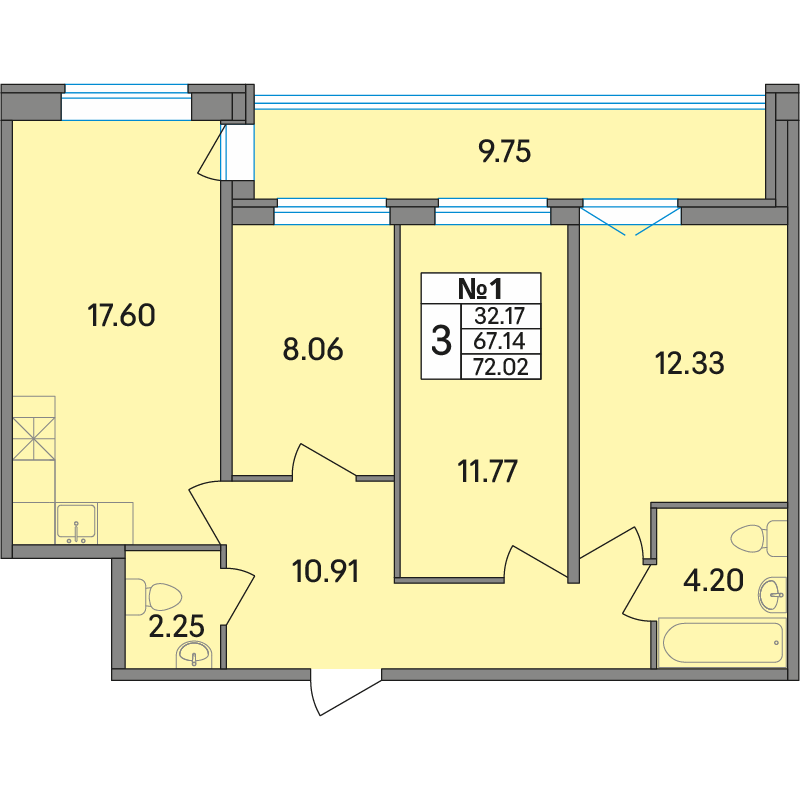 Корпус 1, Подъезд 1, Этаж 1, Квартира № 1