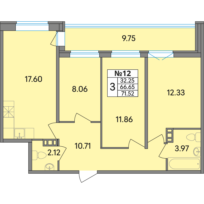 Корпус 1, Подъезд 1, Этаж 2, Квартира № 12
