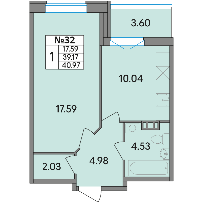 Корпус 1, Подъезд 1, Этаж 3, Квартира № 32