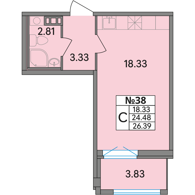Корпус 1, Подъезд 1, Этаж 4, Квартира № 38