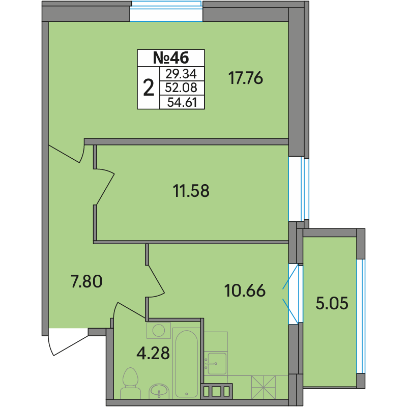 Корпус 1, Подъезд 1, Этаж 5, Квартира № 46